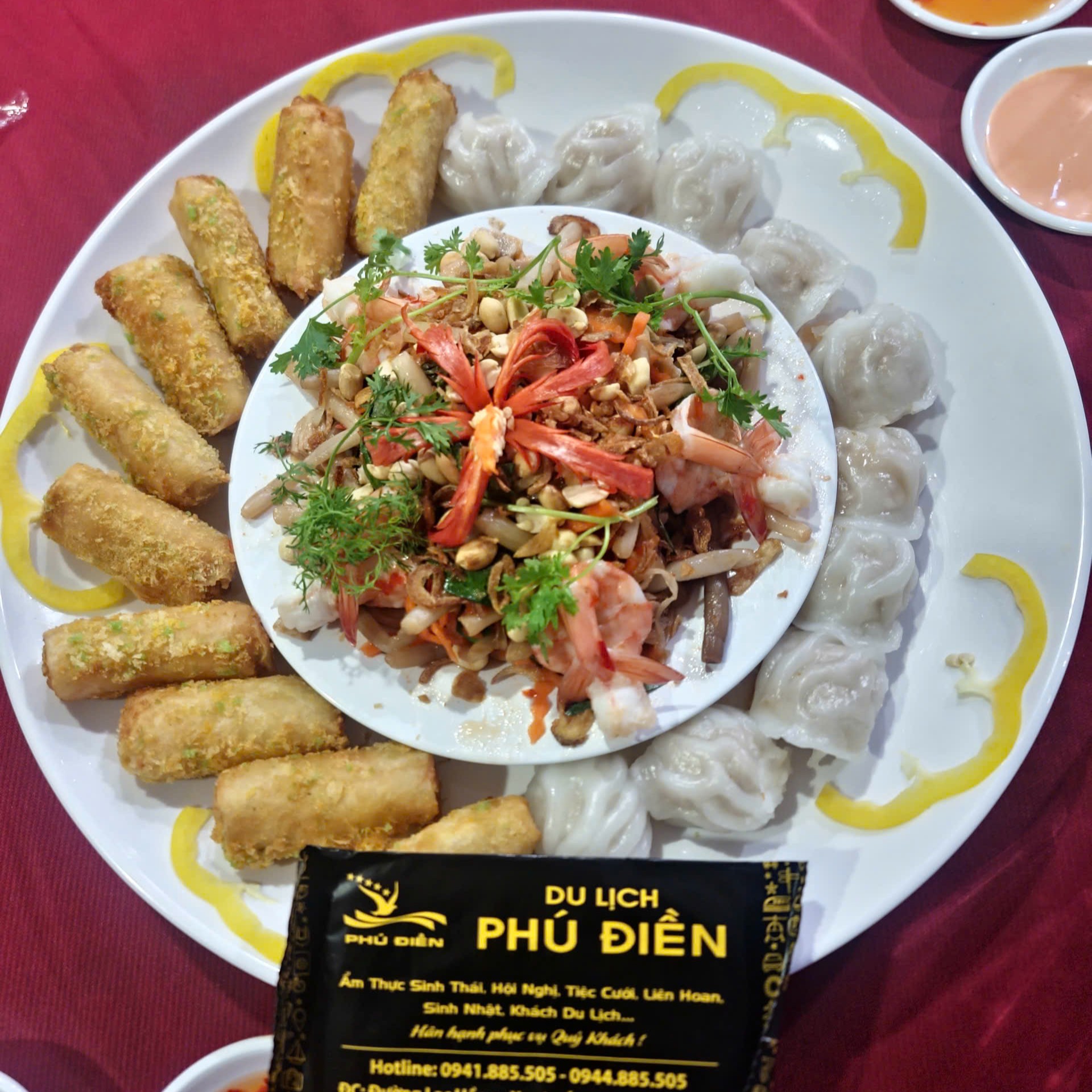 Món Tam bửu tại Khu du lịch Phú Điền là một lựa chọn ẩm thực tinh tế, kết hợp hài hòa ba món ngon đặc trưng: chả giò hải sản, gỏi ngó sen tôm thịt và há cảo hấp. Đây là set món vừa đẹp mắt, vừa giàu dưỡng chất, mang đến trải nghiệm trọn vẹn từ hương vị đến cảm giác thưởng thức – rất phù hợp cho thực khách muốn khám phá ẩm thực Việt theo phong cách thanh nhẹ nhưng vẫn đậm đà.